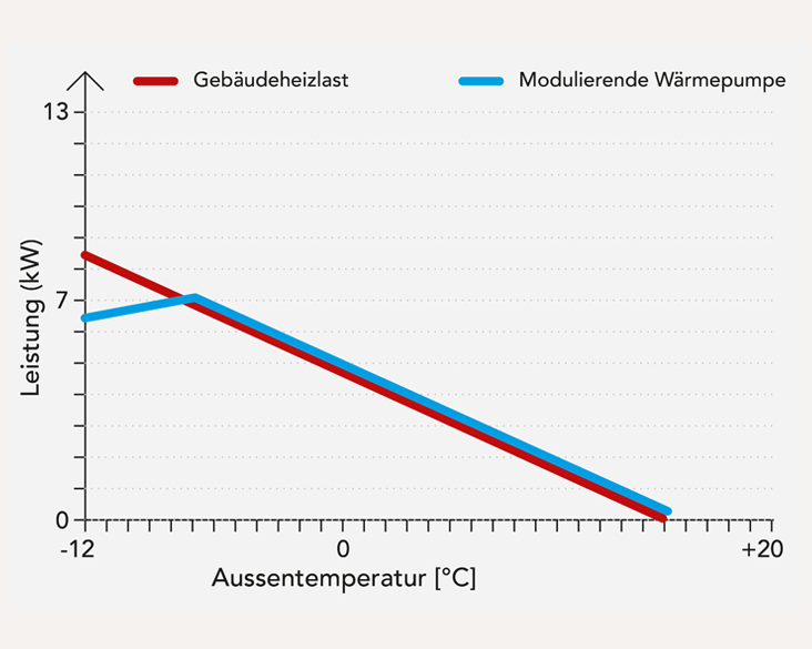 Die AEROTOP® SX kann hingegen ihre Leistung modulieren. Das bedeutet, dass sie auf Ihren Heizbedarf reagiert und dabei die Umgebungstemperatur einbezieht. Es wird also nur die benötigte Energie bereitgestellt. Die Betriebskosten sinken und die Wärmepumpe ist wesentlich effizienter.